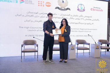 ڕۆژی سێشەممە، ٢٥ـی تشرینی دووەمی ٢٠٢٥، بە ئامادەبوونی بەڕێز ڕێبەر ئەحمەد، وەزیری ناوخۆ، بەڕێز ئالان حەمەسەعید، وەزیری پەروەردە، بەڕێز حەمەی حەمەسەعید، وەزیری ڕۆشنبیری و لاوان، خاتوو د. خانزاد ئەحمەد، ئەمینداری گشتیی ئەنجوومەنی باڵای خانمان و گەشەپێدان، بەڕێز ئازاد حەمەد ئەمین، سەرۆکی سەندیکای ڕۆژنامەنووسانی کوردستان، بەڕێز گاریك هایرەپێتیان، نوێنەری نەتەوەیەکگرتووەکان لە عێڕاق، و بەڕێز دلێر نزار، دامەزرێنەری گۆڤاری ڕۆژامـــە، و چەندین ڕۆژنامەوان و چاڵاکوانانی کۆمەڵگەی مەدەنی و میدیایی، هەڵمەتی (١٦)ـڕۆژەی چالاکی بەرەنگاربوونەوەی توندوتیژی دژی ئافرەتان و کچان، لە ڕێوڕەسمێکی شایستەدا ڕاگەیێندرا.