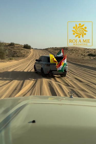 ل بیابانا وەڵاتێ ( دوبەی ) ڕۆژنامەنووس و ئەندازیار ئالان دوسکی، وەکی هەست دەربڕینەك نەتەوەی ئالایێ کوردستانێ بلندکر.