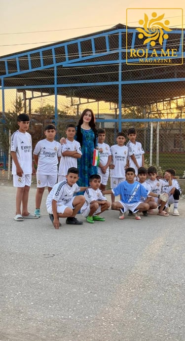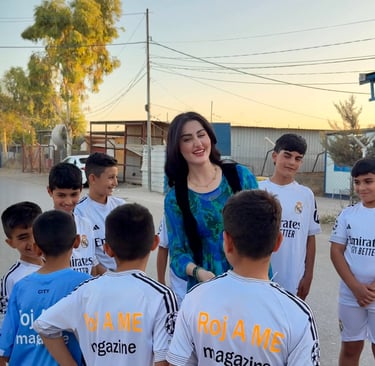 ئەڤرۆ ڕۆژنامەنووس جیلان ڕۆژبەیانی ل ( کەمپا دومیز ) هەڵسا ب چاڵاکییەك مرۆڤی، دەستدا ب پارڤەکرنا چەند فالێنە و درێسێن وەرزشی ب درۆشمێ ( ڕۆژا مە مەگەزین ).